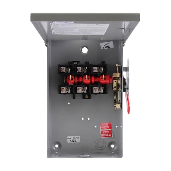 GE Disconectivo Non Fusible Switch 60A 3P 240V Non Fusible General Duty Non-Fusible Safety Switch, 240 VAC, 60 A, 3 Poles, NEMA 1
