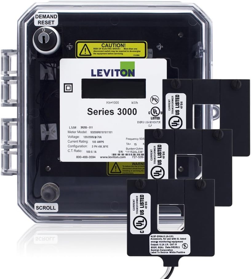 Leviton Submeter, Outdoor, 120/208V, 3 Phase 4 Wire, Max 200A, 3 Split Core Current Transformers, Electric Meter Kit